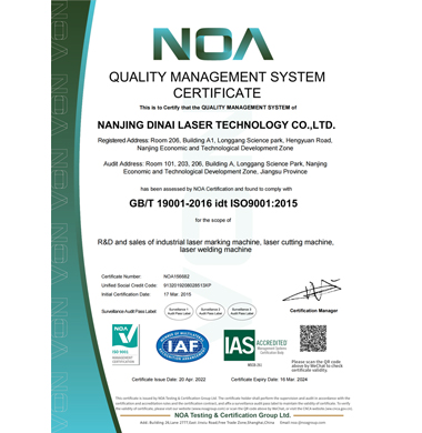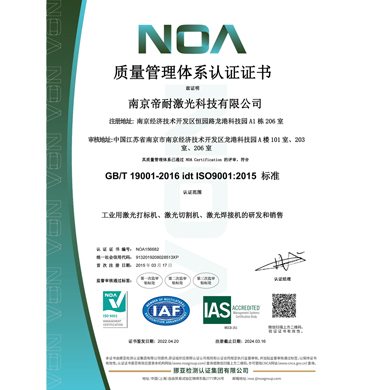 "帝耐激光"已經通過了ISO9001質量管理體系認證,公司始終堅持"客戶至上"和"以市場為導向"的理念,通過多年市場開拓,已經在國內設立辦事處多個,分布在我國主要中心城市,建立起了完善的市場服務體系。"帝耐激光"?員工總數的50%以上是市場銷售和服務人員,以"貼近用戶、延伸服務"為宗旨,建立覆蓋全國的銷售和售后服務網絡,確保及時、快捷地解決客戶的問題和滿足客戶的需求。
